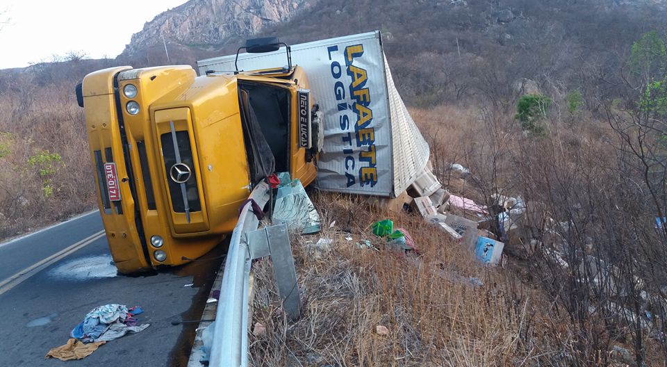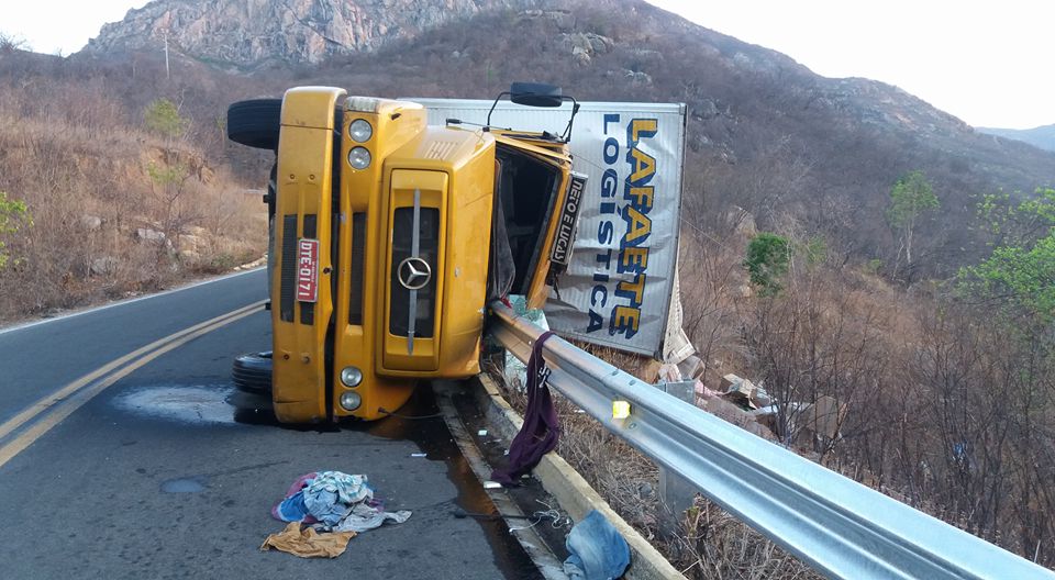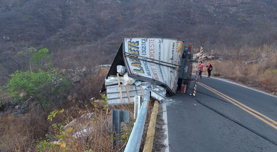 Um caminhão, pertencente a transportadora Lafaete, conhecida por realizar o transporte de mudanças do Ceará para estados do Sudeste, tombou na tarde desta quinta-feira (27) quando descia a ladeira de Monsenhor Tabosa, no trecho conhecido como Ladeira dos Macacos. O caminhão era conduzido pelo motorista Zacarias da Silva e tinha como ajudante uma rapaz ainda não identificado.