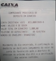 Arleudo contou que depois de mandar os comprovantes do deposito ele orientou ao mesmo que o dinheiro só iria cair na terça, por ser final de semana e os valores terem sido depositados via envelope. “Foram dois depois, um de mil reais e outro de mil e quinhentos” lembrou ele.