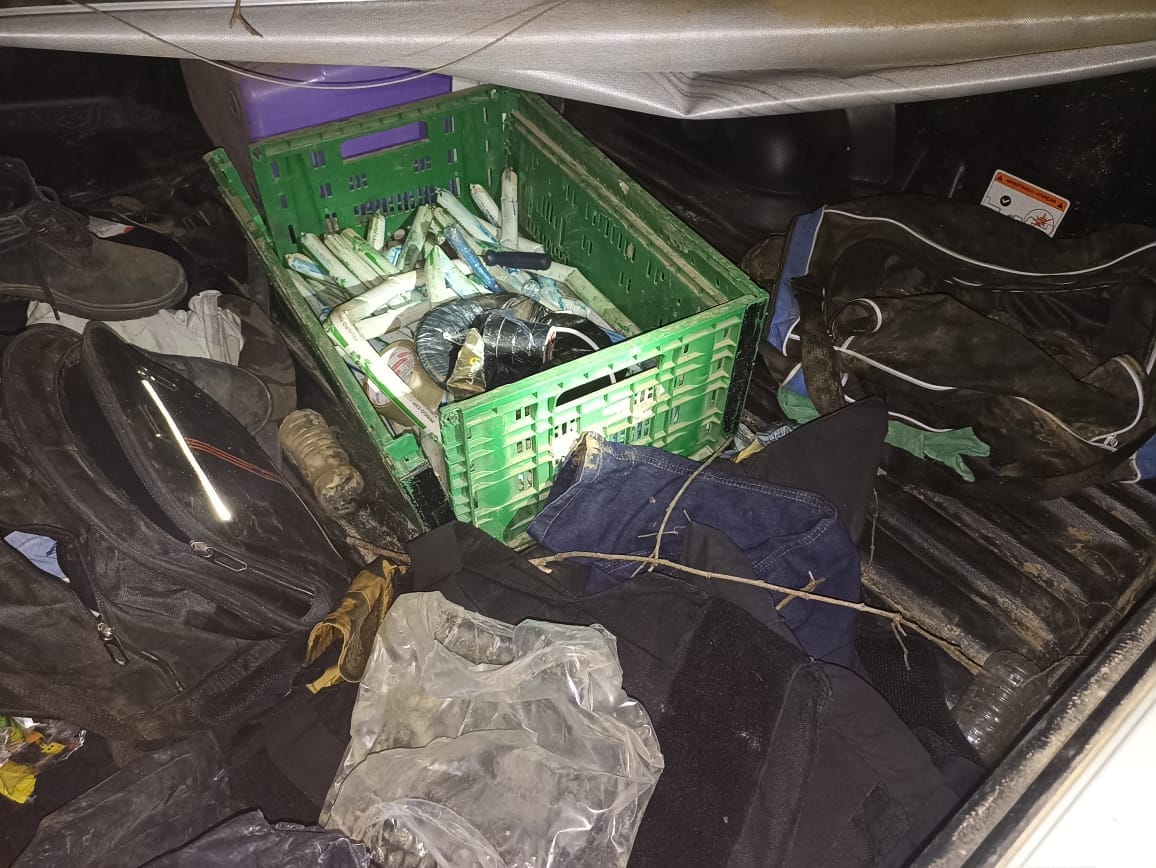 Os veículos bastante avariados, com pneus estourados e contendo ainda dezenas de explosivos na sua carroceria, foram abandonados pelo bando que talvez tenha seguido fuga em outros carros.