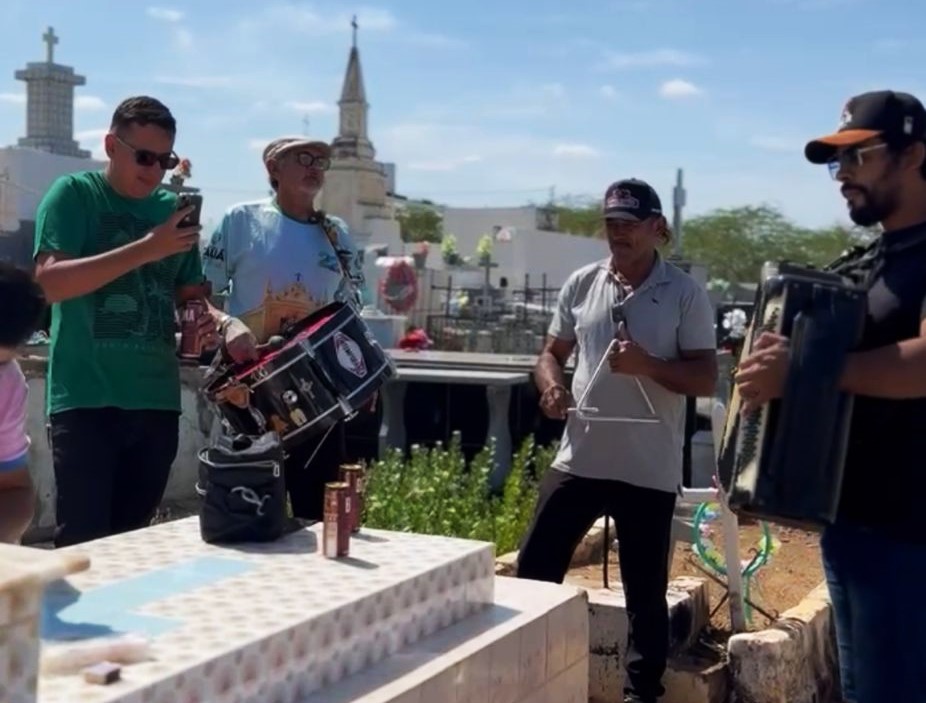 Na manhã daesta quarta-feira (24), uma cena inusitada chamou a atenção no Cemitério São Judas Tadeu, em Tauá. Um grupo de amigos e familiares se reuniu para comemorar o aniversário de Antonio Humberto Teixeira, falecido em 2019, com direito a cerveja, forró pé-de-serra e muita saudade. As informações são do repórter Wilrismar Holanda.
