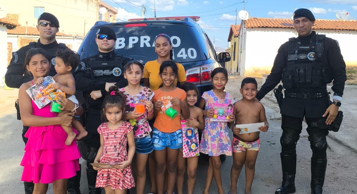 Neste domingo (12), policiais do Batalhão do Raio de Tamboril levaram alegria a dezenas de crianças durante uma ação especial em comemoração ao Dia das Crianças. A equipe percorreu diversos bairros da cidade realizando a entrega de brinquedos e promovendo momentos de descontração e carinho com as famílias.